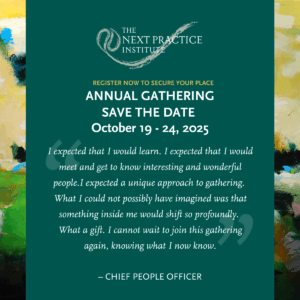 Andi Winters and I are delighted to be joining the faculty once again for the eighth Annual Gathering of the Next Practice Institute at Ocean Edge on Cape Cod in October this year. To learn more, you can watch a short video where we discuss what we mean by internally-referenced (note that the dates we refer to in the video are for last year’s program). The Annual Gathering is a fantastic opportunity to spend a week in a beautiful location with a global community of practitioners. Click here to register. Email Paul for your special discount (this is time sensitive).